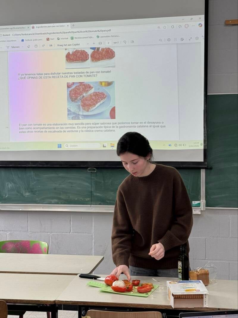 Ze proefden van de heerlijke kaki, een stuk fruit dat in Spanje veel gegeten wordt. Ze maakten zelf ‘tostadas con aceite y tomate’. Jammergenoeg gebruikten sommigen iets te veel look.